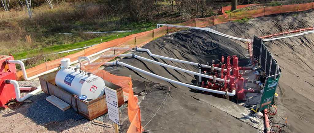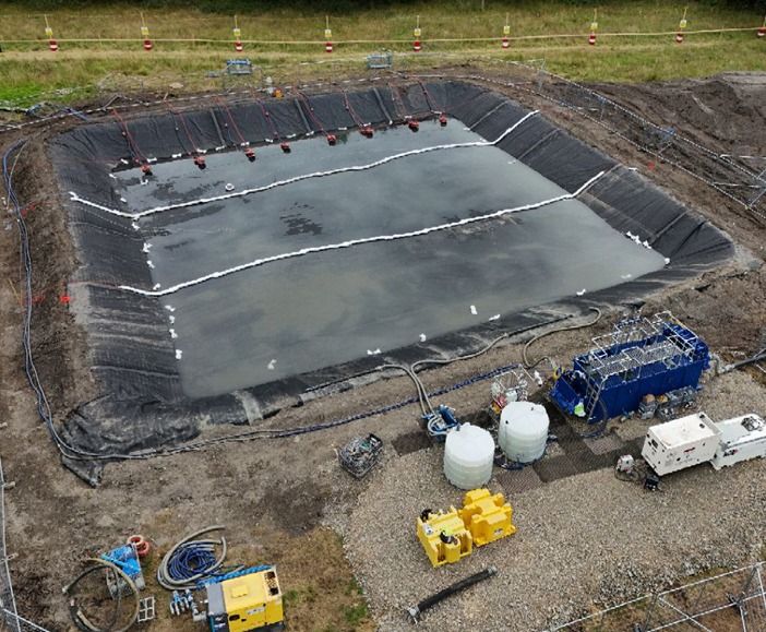 Test-pumping of a borehole in an industrial area.