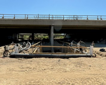 A constant rate discharge test is performed to assess the productivity of a borehole (and the immediate surrounding aquifer) according to its response to the abstraction of groundwater over an extended period. The SANS 10299-4:2003 guidelines provide specifications on the duration (12-100 hours or more can be specified) of constant rate discharge tests required, depending on the planned use of the groundwater and the availability of other water resources in the area. Constant rate discharge tests entail pumping the borehole for the duration of the test at a single abstraction rate, with the rate not deviating by more than 5% for the duration of the test. During the test, the groundwater level and abstraction rate must be monitored at pre-determined intervals (as per SANS 10299-4:2003). As with the step-drawdown test, after completion of the constant rate discharge test groundwater level recovery must be measured to 95% of the rest or static groundwater level prior to testing.