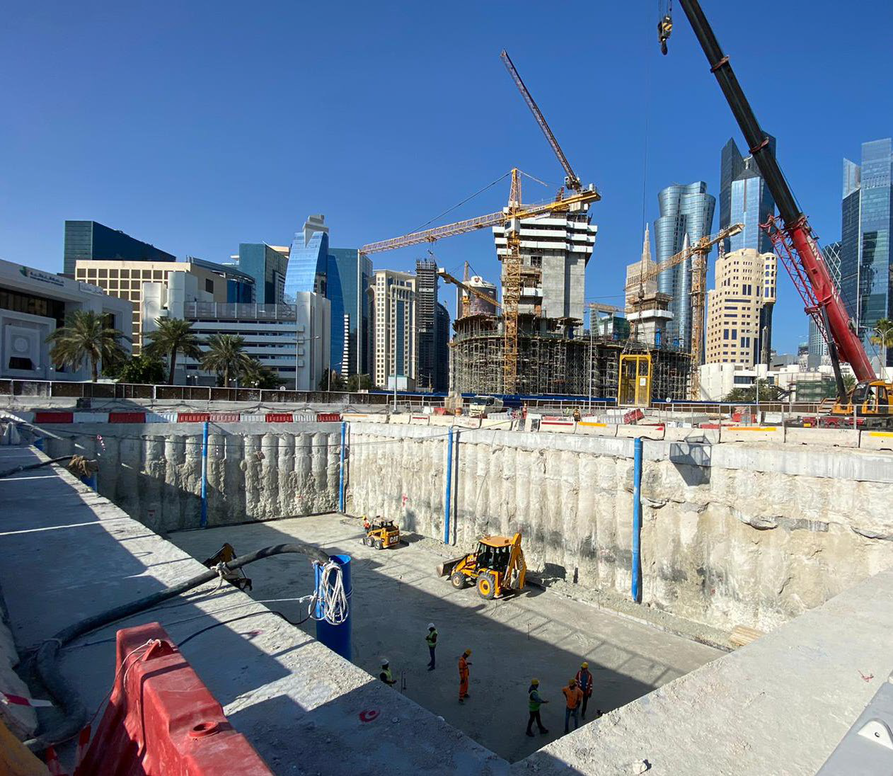 • The Al Bidda Underpass and Tunneling works had to be completed in 3 phases to maintain the flow of traffic along the corniche. The dewatering system requires pipe welding works and to be operated fully over the entire tunnels even under the live road as it was diverted, and new phases were dewatered.