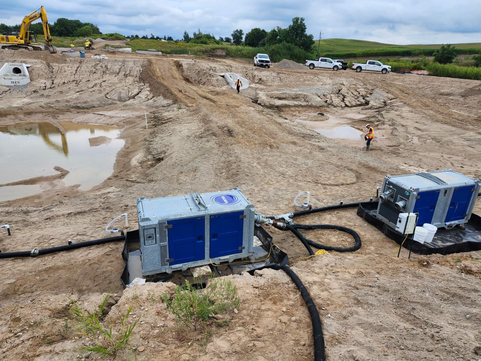 Figure 1: Benched Vacuum Wellpoint Dewatering System Using a Piston Wellpoint Pump for a Lagoon Excavation
